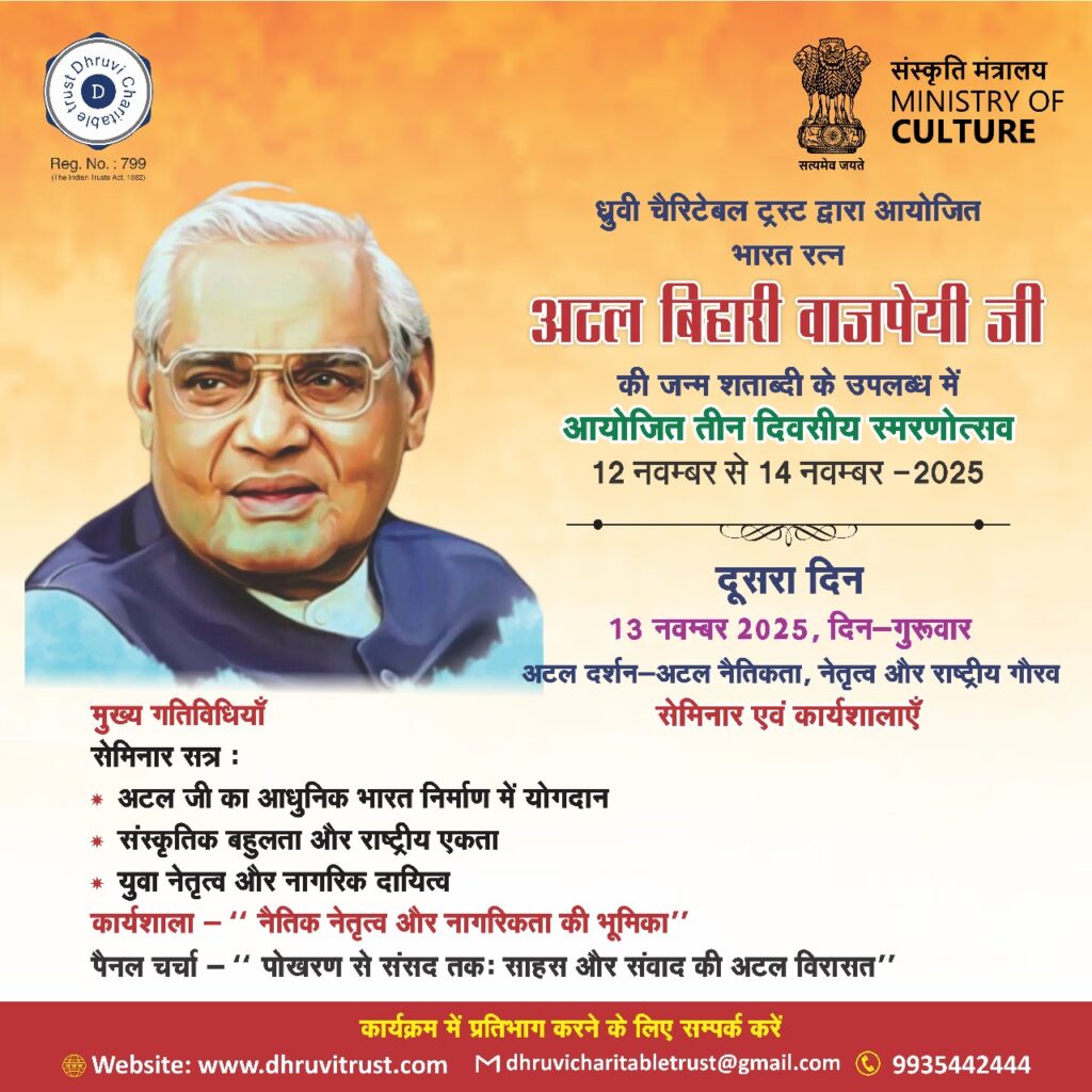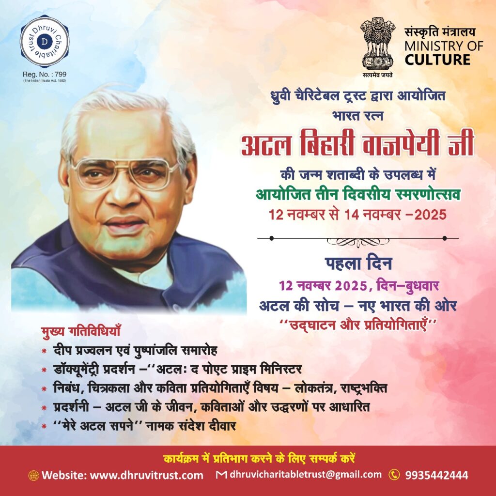 Artists from schools and cultural institutions will showcase performances inspired by Atal Ji’s poetry, ideas, and India’s rich traditions.